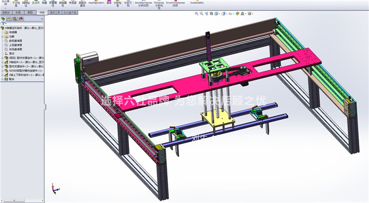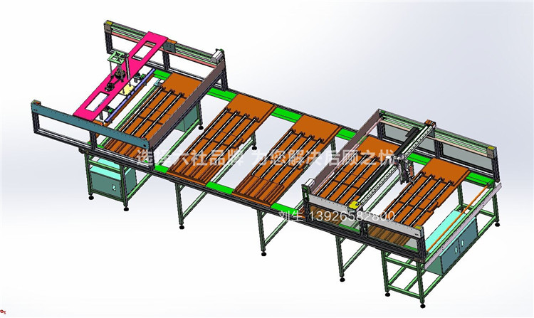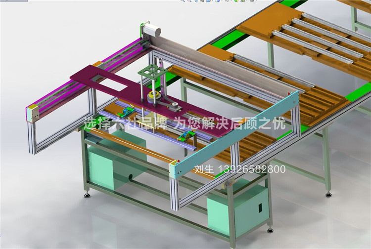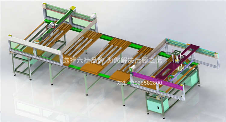 LED灯大型生产线带锁螺丝机及下料搬运机械手,整条线6米长,这套图纸是LED灯锁螺丝和包装类型的自动化生产线体:设备为L6000*W2000*H1700mm,用于LED灯锁螺丝和线上包装线体后端带自动搬运下料机械手,这条大型的自动化线体前端为自动锁螺丝机也是由大行程的三轴机械手结构组成可针对大小1500*1500mm范围内LED灯或面板类的任何产品进行锁螺丝作业,设备后端的自动下料机械手搬运机也是超大行程的,夹料治具大小宽度可调,上下运动为伺服电机加丝杆可有效的保证夹取产品的精度,丝杆的上下由同步带轮传动,同步带套在丝杆中间固定,丝杆和滑块做上下运动,这种结构也是很适合用在一些夹取比较大的物体和行程比较长的场合使用,结构稳定图纸下载后可直接调用结构等,这套为最新的自动化包装锁螺丝下料类型的一型生产线